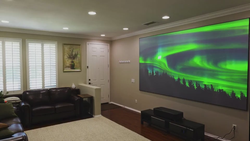 Il s'agit d'un écran haut de gamme qui accompagne parfaitement l'un des nouveaux projecteurs TV laser UST résidentiels ou un projecteur UST commercial ou à courte focale pour les présentations itinérantes à plus grande échelle.
