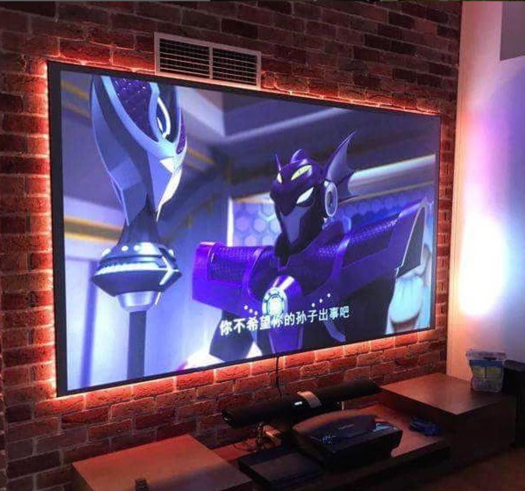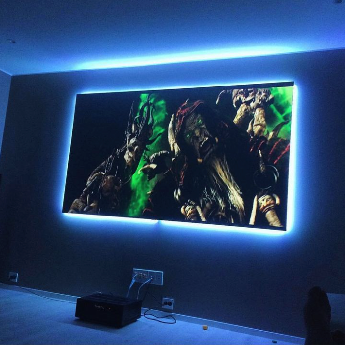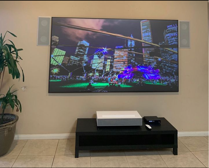 - Projektionsabstand : Ces projecteurs sont plus éloignés de la bande de couleur, typiquement de 2,5 à 4 mètres (ou de 8 à 13 pieds).